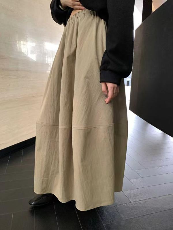 体型カバー効果抜群のAライン: 腰回りをすっきり見せつつ、裾に向かって広がるAラインシルエットが、気になる下半身を自然にカバーしてくれます。